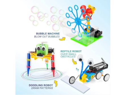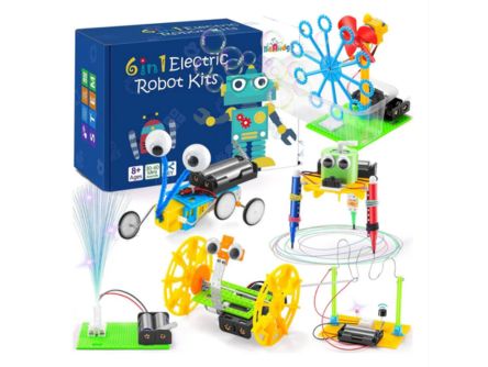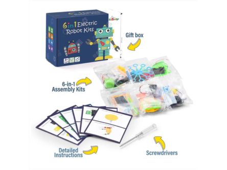 - 6 in 1 DIY STEM Robotics Kit inspires young inventors to build their models.